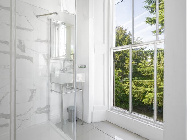 Our very spacious Suites are positioned on the ground floor and both overlook the garden through floor to ceiling windows with access to individual private terraces. They are en-suite with both have individual spacious seating areas, along side flat-screen TV's and complimentary tea, coffee and biscuits.