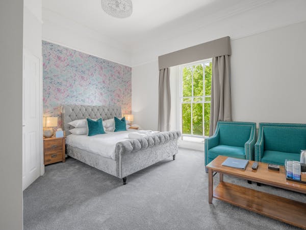 Our Superior Double Rooms each have a spacious seating area overlooking the Guest House grounds and feature a large flat screen TV and complimentary tea, coffee and biscuits.